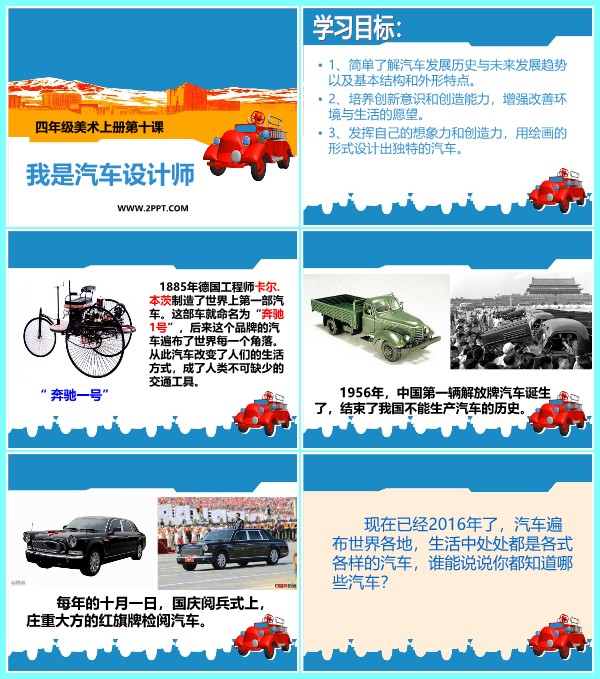 当前位置: 首页PPT模板美术课件美术四年级上 人教版四年级上册美术《我是汽车设计师》课件PPT模板 wenyaodong 美术四年级上 5 小时前 声明:本站所有文章,如无特殊说明或标注,均为本站原创发布。任何个人或组织,在未征得本站同意时,禁止复制、盗用、采集、发布本站内容到任何网站、书籍等各类媒体平台。如若本站内容侵犯了原著者的合法权益,可联系我们进行处理。 wenyaodong普通用户 收藏 海报分享