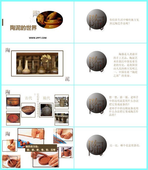 当前位置: 首页PPT模板美术课件美术五年级上 人教版五年级上册美术《陶泥的世界 》课件PPT模板 wenyaodong 美术五年级上 7 小时前 声明:本站所有文章,如无特殊说明或标注,均为本站原创发布。任何个人或组织,在未征得本站同意时,禁止复制、盗用、采集、发布本站内容到任何网站、书籍等各类媒体平台。如若本站内容侵犯了原著者的合法权益,可联系我们进行处理。 wenyaodong普通用户 收藏 海报分享