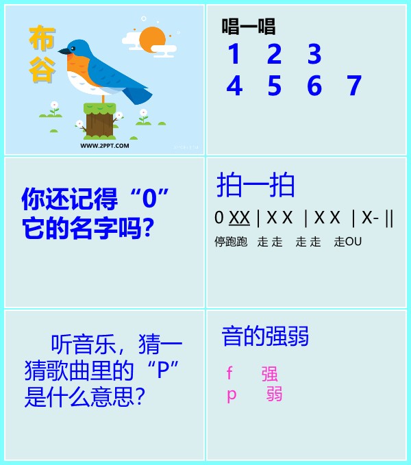 当前位置: 首页PPT模板音乐课件音乐一年级上 人音版一年级上册音乐《1布谷》课件PPT模板 wenyaodong 音乐一年级上 12 小时前 声明:本站所有文章,如无特殊说明或标注,均为本站原创发布。任何个人或组织,在未征得本站同意时,禁止复制、盗用、采集、发布本站内容到任何网站、书籍等各类媒体平台。如若本站内容侵犯了原著者的合法权益,可联系我们进行处理。 wenyaodong普通用户 收藏 海报分享