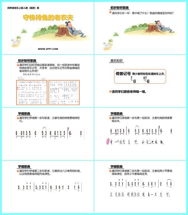 当前位置: 首页PPT模板音乐课件音乐四年级上 人音版四年级上册音乐《2守株待兔的老农夫》课件PPT模板 wenyaodong 音乐四年级上 4 天前 声明:本站所有文章,如无特殊说明或标注,均为本站原创发布。任何个人或组织,在未征得本站同意时,禁止复制、盗用、采集、发布本站内容到任何网站、书籍等各类媒体平台。如若本站内容侵犯了原著者的合法权益,可联系我们进行处理。 wenyaodong普通用户 收藏 海报分享