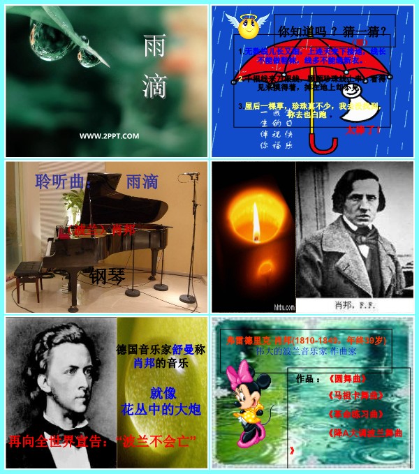 当前位置: 首页PPT模板音乐课件音乐五年级上 人音版五年级上册音乐《雨滴(钢琴曲,肖邦曲) (2)》课件PPT模板 wenyaodong 音乐五年级上 3 天前 声明:本站所有文章,如无特殊说明或标注,均为本站原创发布。任何个人或组织,在未征得本站同意时,禁止复制、盗用、采集、发布本站内容到任何网站、书籍等各类媒体平台。如若本站内容侵犯了原著者的合法权益,可联系我们进行处理。 wenyaodong普通用户 收藏 海报分享